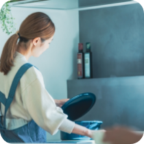 使用した調理器具や食器、そしてキッチンの周辺をすばやく整理整頓します。加えて、シンクの清掃や普段手が届かない排水口や食器棚の清掃も行います。また、次週の料理メニューの選択もお客様と一緒に行います。